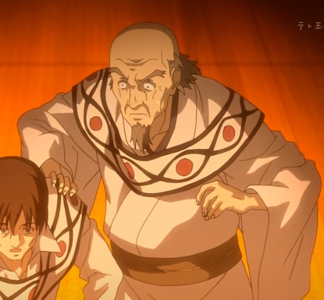 Funatsu is a bald old-aged man who wears the traditional robes of the Omekata Cult.