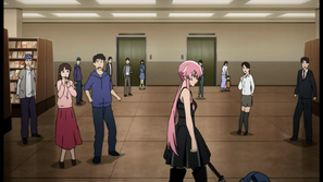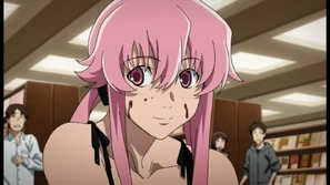 Yukiteru's "friends" hold Yuno back to try and save themselves from Minene's Explosions